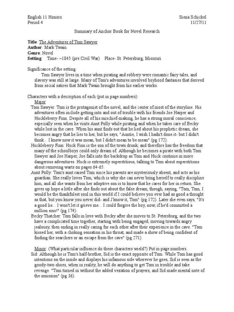 Summary Of Tom Sawyer Pdf The Adventures Of Tom Sawyer Huckleberry Finn